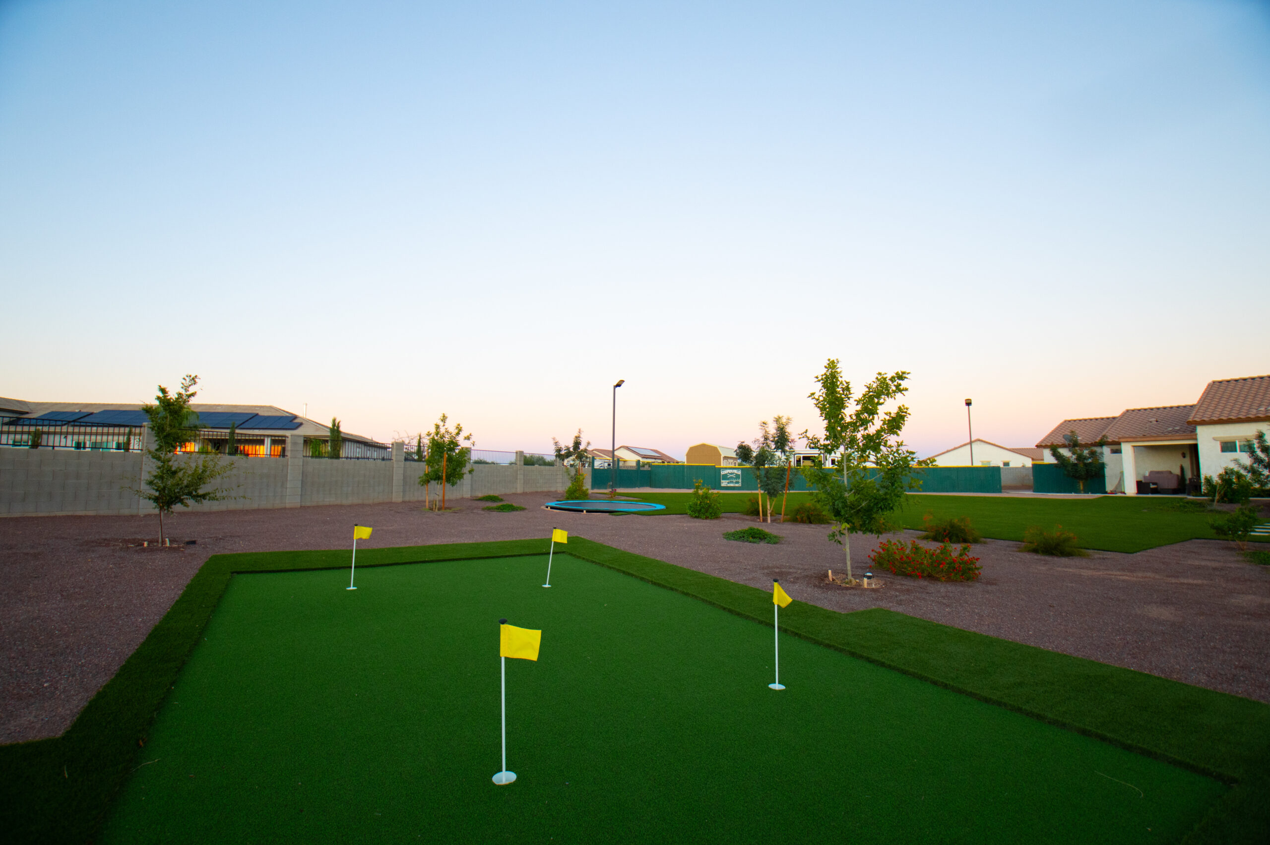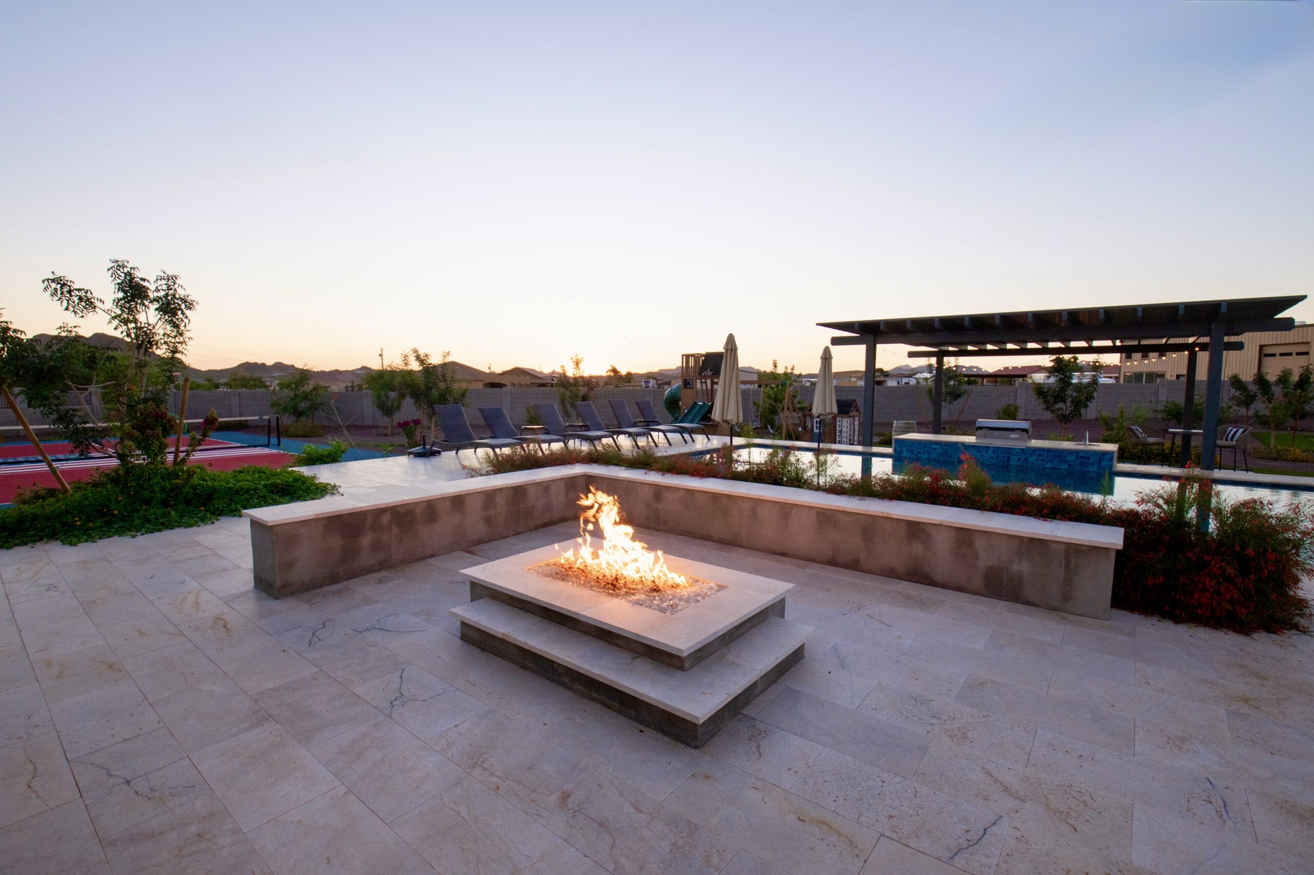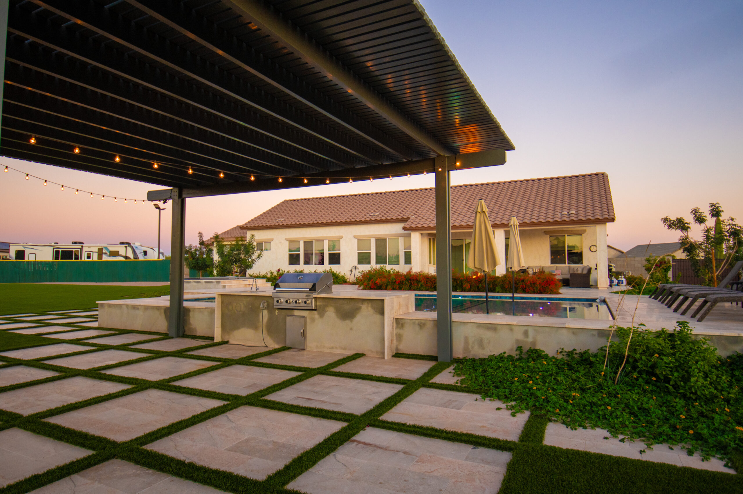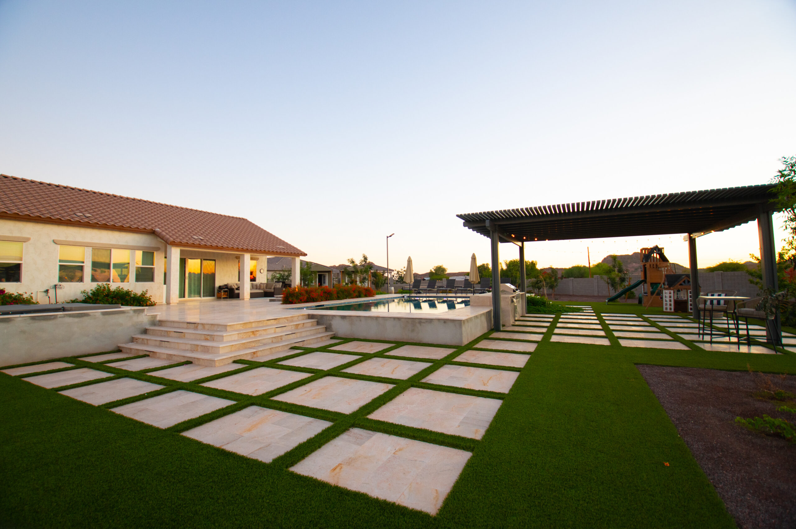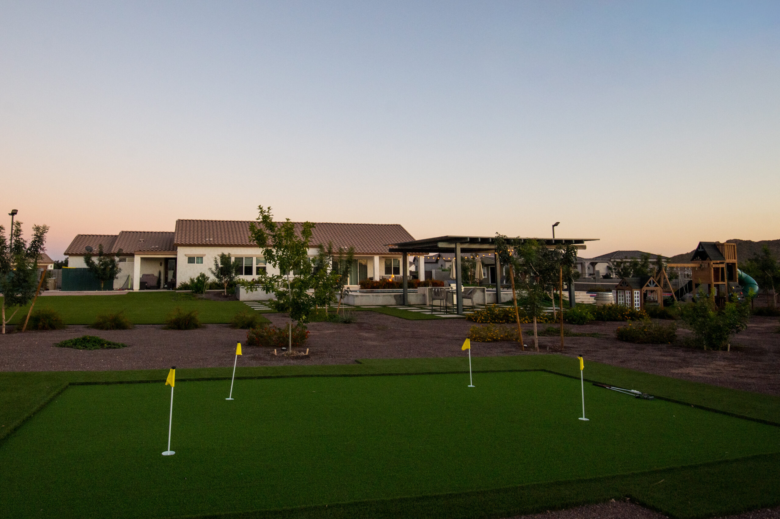 At the Lamb residence, the landscape was designed with one main goal in mind: creating the ultimate space for hosting. As a public figure who frequently brings people together, the homeowner needed a yard that could handle large-scale events while still feeling warm and welcoming for family time. The result is an expansive, resort style outdoor space perfect for entertaining family and the community. From the pool, hot tub, and outdoor kitchen to the pickleball court, wiffleball field, and spacious pergola, every element was built with gatherings in mind. A fire pit and layered lighting create the perfect ambiance for evening events, while the trampoline and open turf areas keep things fun for grandkids and adults alike. The Lambs now enjoy a yard that balances elegance, entertainments, and everyday family connection; all in a space that’s always ready for a crowd.